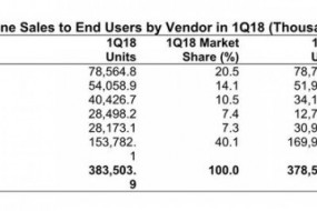 2018 Q1手機銷量出爐:小米同比增長124% 亞太地區(qū)增速330%