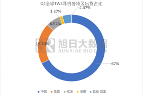 據(jù)旭日大數(shù)據(jù)統(tǒng)計(jì),2020年第四季度全球TWS耳機(jī)出貨量達(dá)到150KK,中國(guó)地區(qū)出貨量在100KK左右,占比達(dá)到64%,其中白牌耳機(jī)出貨量接近90KK,美國(guó)地區(qū)占比達(dá)到17.2%,歐洲地區(qū)占比達(dá)到10.3%,印度地區(qū)出貨占比為2.7%,其他國(guó)家出貨占比為5.7%。