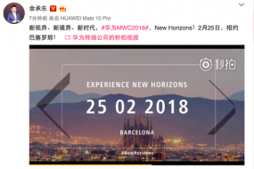據(jù)了解,今年巴展期間(2月25日),華為將發(fā)布一款新品。從宣傳視頻來看,很可能是一款全新MateBook或者是平板電腦:“Experience New Horizons”意味著邊框更窄,顯示屏更大。“很有可能是一款全面屏的筆記本電腦。”產(chǎn)業(yè)鏈上的人分析道。