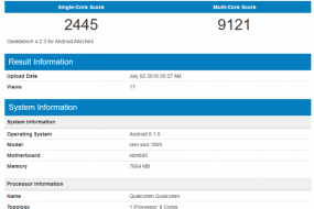 該機(jī)型號為“vivo vivo 1805”,裝備高通驍龍845八核處理器,基礎(chǔ)時(shí)鐘頻率為1.77GHz,8GB的內(nèi)存,預(yù)裝Android 8.1.0系統(tǒng)。該機(jī)單核成績?yōu)?445分,多核成績?yōu)?121分。