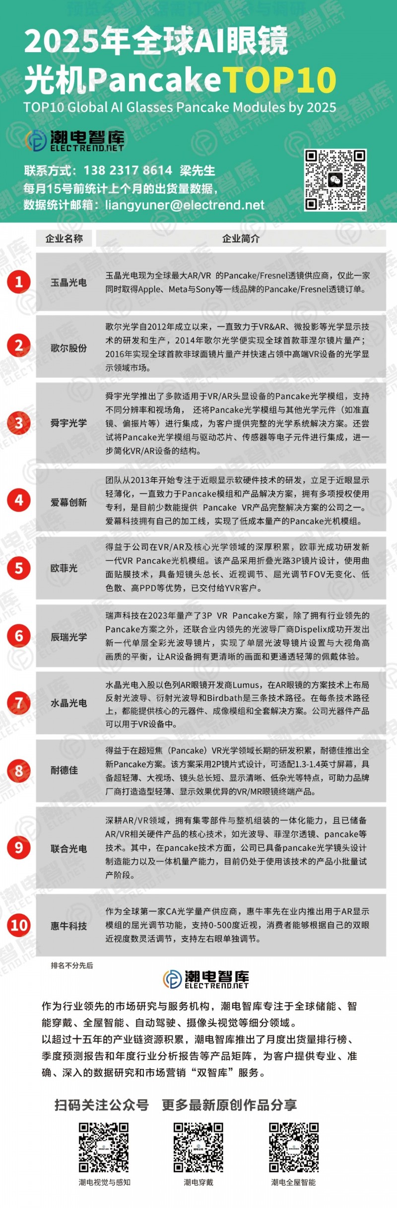 2025年全球AI眼鏡光機Pancake廠商TOP10