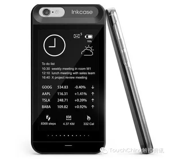 雖然是智能手機的第二屏,InkCase其實更像是一個通過藍牙和手機連接的智能硬件,跟智能手表Pebble類似,只是位置變了。所以它不能(或者說不想)實現(xiàn)雙屏同步。InkCase內(nèi)置有存儲器和解碼芯片,app上想要顯示到第二屏的信息,通過藍牙發(fā)送到InkCase轉換解碼并通過電子墨水顯示出來。