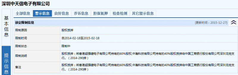 小編在《深圳信用網(wǎng)》上查閱中天信企業(yè)信息時發(fā)現(xiàn),中天信電子去年將香港超強健電子有限公司持有的60%股權(quán),中瀚科技有限公司持有的40%股權(quán)質(zhì)押給中國工商銀行股份有限公司深圳龍崗支行。同時,在2012年—2015年這三年期間,中天信分別以印刷機、回流焊、貼片機、切割機、光學(xué)檢測系統(tǒng)、SMT生產(chǎn)線等機器設(shè)備進(jìn)行擔(dān)保抵押,可見公司從2012年便開始出現(xiàn)資金周轉(zhuǎn)困難,公司經(jīng)營早已危機四伏!