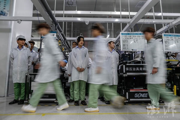 位于東莞大嶺山鎮(zhèn)的金立工業(yè)園,“廠哥廠妹”們從車間里走出。