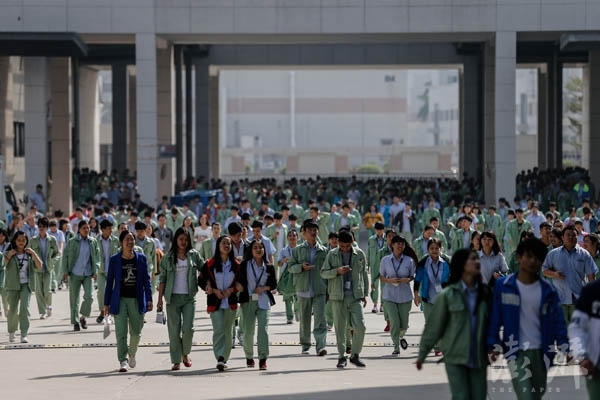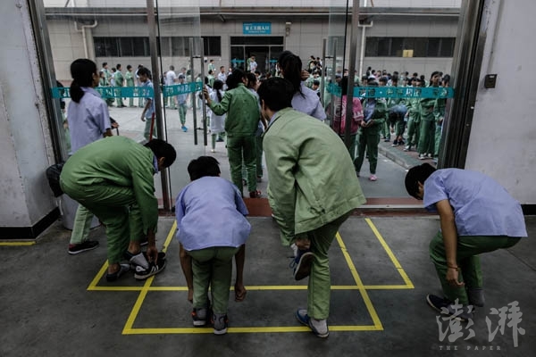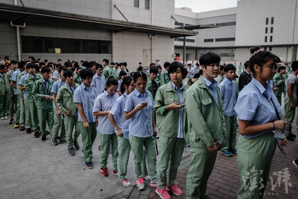 午休前,工人們列隊離開生產(chǎn)線,軍事化的管理是效率的保證。