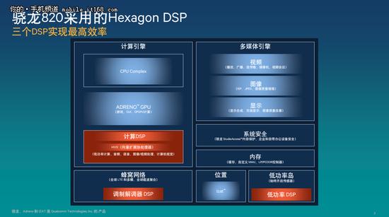 驍龍820在低功耗拍攝方面也“早”有布局。Qualcomm在計算DSP方面擁有很長的歷史,全新計算DSP增加了對視頻功能的支持;另一個全新的DSP是位于低功率島(LowPowerIsland:LPI)的低功率DSP。通過全新Hexagon680DSP,Qualcomm推出了全新的Hexagon架構(gòu),包括視頻功能以及低功率島,并對Hexagon架構(gòu)進行了擴展,讓它支持一些新功能(如視頻),而前幾代Hexagon主要用于對音頻功能的支持。Hexagon擁有強大的開發(fā)者工具,并且得到了超過100家合作伙伴的支持。目前,有接近1000家合作伙伴計劃將CPU代碼或功能遷移到Hexagon之上,這樣做的目的是希望降低功耗。