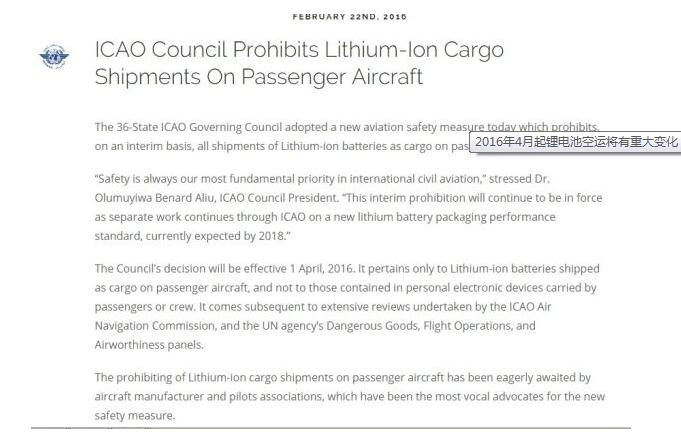 2016年4月起鋰電池空運(yùn)將有重大變化!