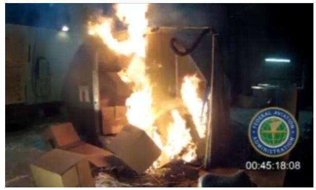 FAA曾經(jīng)模擬一個(gè)航機(jī)貨艙裝滿鋰離子電池,當(dāng)電池短路,釋放出氫氣等氣體,氣體燃燒時(shí)發(fā)生強(qiáng)烈爆炸,艙內(nèi)濃煙密布,機(jī)艙內(nèi)的滅火系統(tǒng)雖然可以撲滅火種,但未能阻止電池繼續(xù)發(fā)熱,令火勢死灰復(fù)燃,爆炸威力可爆開飛機(jī)機(jī)身。