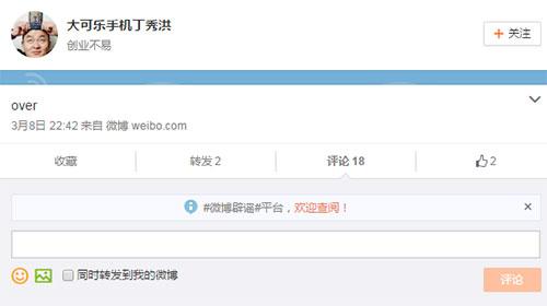 “原本我們也抱著毅然的決心堅持戰(zhàn)斗,但是手機行業(yè)的洗牌比預(yù)期更快、更殘酷。我們挺過了產(chǎn)品競爭、營銷競爭,但隨著更多互聯(lián)網(wǎng)巨頭的加入,手機行業(yè)的競爭已經(jīng)轉(zhuǎn)移到資本競賽。不期而遇的資本寒冬,導(dǎo)致原本談好的投資協(xié)議,最終難以兌現(xiàn)。”丁秀洪將失敗的原因歸結(jié)于資金鏈的斷裂。