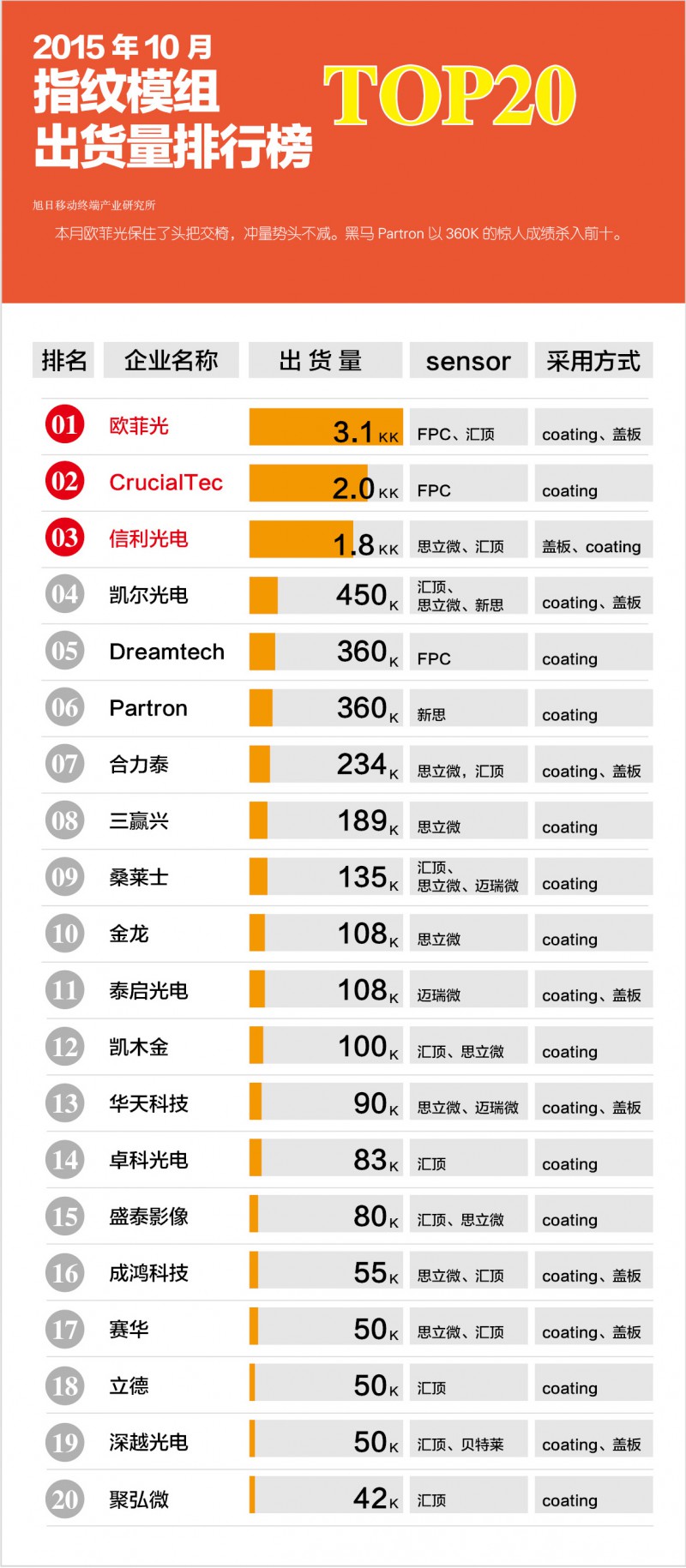 本月歐菲光保住了頭把交椅,沖量勢(shì)頭不減。黑馬Partron以360K的驚人成績(jī)殺入前十。