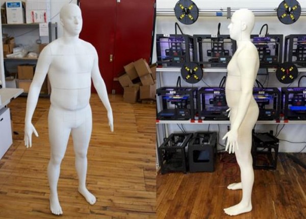 據外媒報道,近日紐約兩家公司合作推出了一項服務(wù),任何人只需花3000美元就可以通過(guò)3D打印技術(shù)復制出一個(gè)全尺寸的自己。首先,特殊的相機會(huì )對客戶(hù)進(jìn)行全方位的掃描成像,通過(guò)電腦自動(dòng)生成切割設計圖。然后這家公司將使用150臺MakerBot3D打印機,將每位客戶(hù)的身體分成88個(gè)獨立的部分打印,隨后進(jìn)行組裝。