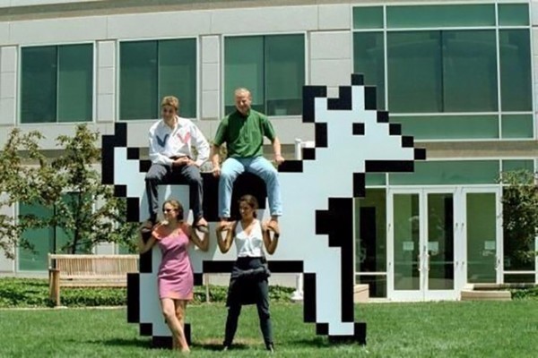 1988年的WWDC上,時(shí)任蘋果CEO約翰·斯卡利等一小群蘋果員工在衣服扣子上繪制了一只像牛一樣的狗,名叫ClarustheDogcow。這個(gè)卡通形象由蘋果傳奇圖形設(shè)計(jì)師SusanKare設(shè)計(jì),在早期MacOS系統(tǒng)中,用來顯示打印頁面的朝向。