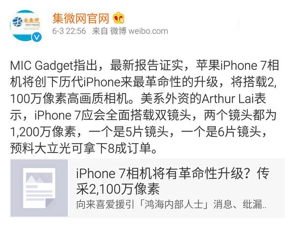 成也蕭何敗也蕭何,由于蘋果新機銷售疲軟以及競爭者分流訂單,大立光營收創(chuàng)兩年新低。不過據(jù)ArthurLai消息,iPhone7可能會全面搭載雙1200萬像素鏡頭,并預(yù)測大立光拿下高達八成訂單,想想還是有點小激動。