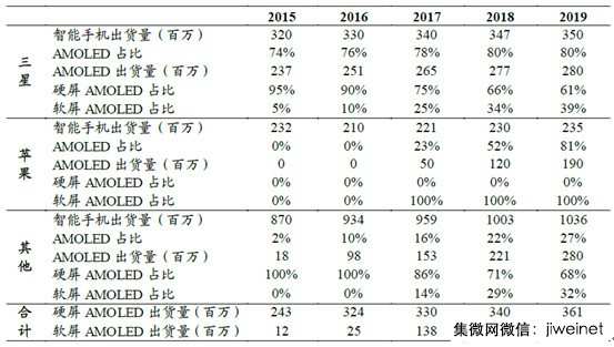 2015-2019年智能手機AMOLED面板出貨量預(yù)測