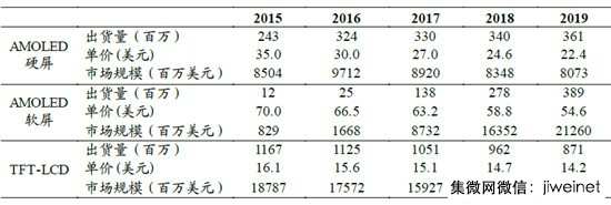 2015-2019年智能手機用AMOLED市場規(guī)模測算