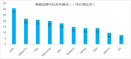 2016年上半年,新發(fā)布的機型中,有425款價(jià)格低于5K盧比,有102款價(jià)格在5K到10K之間,有50款價(jià)格在10K到20K之間,超過(guò)20K的有29款。