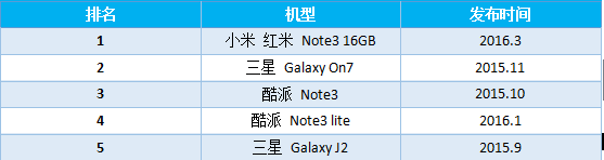 2016年上半年,印度手機市場(chǎng)暢銷(xiāo)機型中,國產(chǎn)機型有紅米Note3、聯(lián)想K4Note、樂(lè )視樂(lè )1s、酷派Note3等。