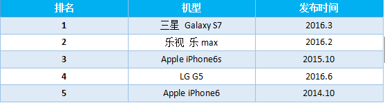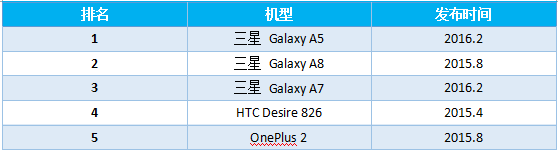2016H1暢銷(xiāo)機型前五(5K-10K價(jià)格區間)