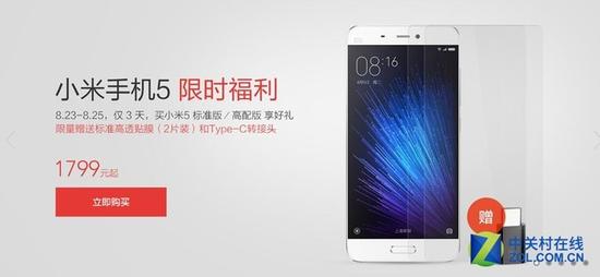 小米手機5降價至1799元