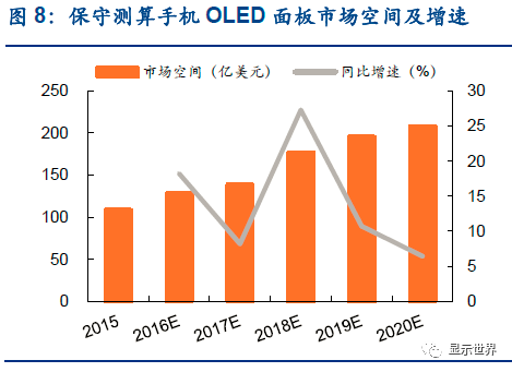 2.3.1.保守(樂觀)預計2020年手機OLED屏市場空間208億美元(408億美元),五年CAGR為13.93%(30.42%)