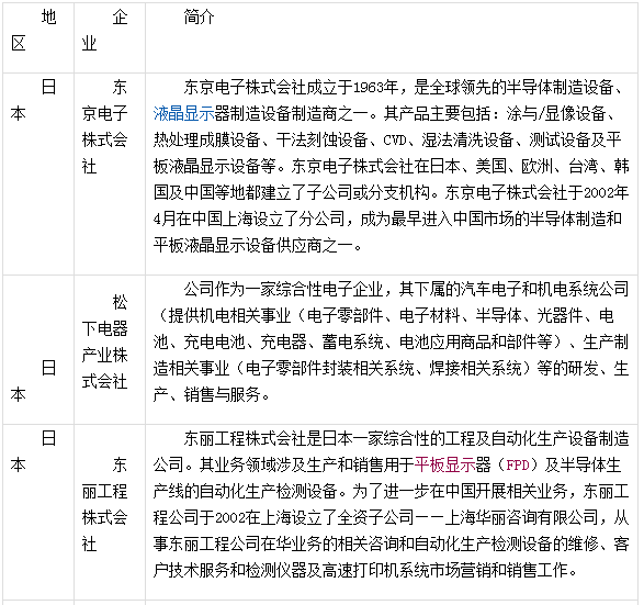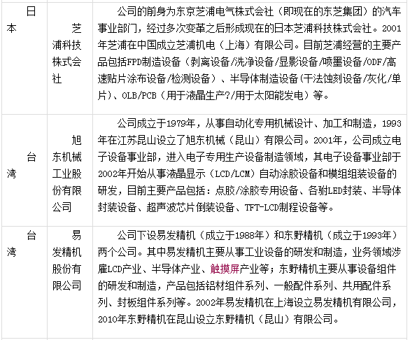 最后,我們將觸控面板制備過程中所涉及的主要設(shè)備以一張表作為總結(jié),以供投資者查閱參考。其中標注底色的表格指工藝中的重點設(shè)備。