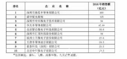 一、2016年中國(guó)集成電路設(shè)計(jì)十大企業(yè)