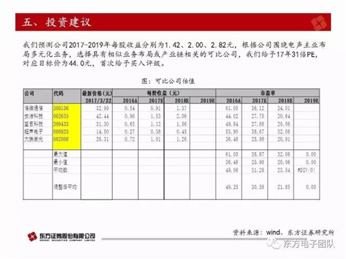 我們預(yù)測公司17-19年每股收益分別為1.42、2.00、2.82元,根據(jù)可比公司,我們給予17年31倍PE,對應(yīng)目標(biāo)價(jià)為44.0元,首次給予買入評級。