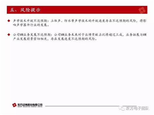 聲學(xué)技術(shù)升級不達(dá)預(yù)期;公司VR業(yè)務(wù)發(fā)展不達(dá)預(yù)期。