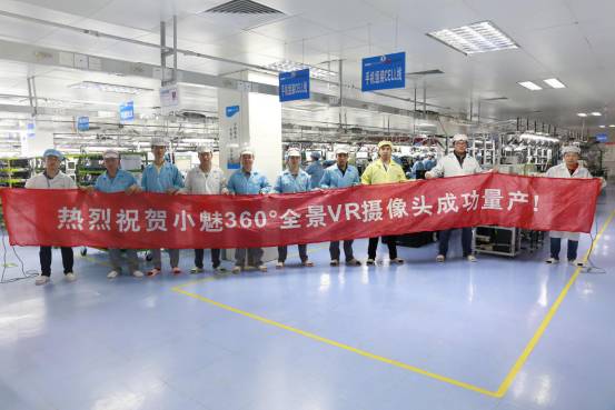 工廠(chǎng)員工慶祝聞泰小魅360°全景VR攝像頭成功量產(chǎn)!