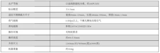 全自動高溫膠貼合機是將高溫膠與不銹鋼載片自動貼合,滾壓,切斷,傳送至下一工位的全自動化設備,設備采用三菱PLC系統(tǒng)控制,高溫膠及不銹鋼載片采用人工上料,設備可兼容不銹鋼載片寬度在80mm-120mm,長度240mm-300mm,厚度0.8-1.0mm彈性不銹鋼片。