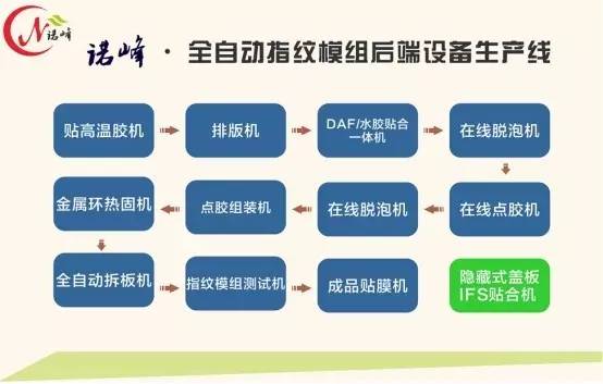 基于此,手機報在線(http://m.networkstorage.cn/)針對諾峰的整條指紋模組設備生產(chǎn)線進行了詳細解讀。下圖為分段設備及詳細的解說,敬請觀看。