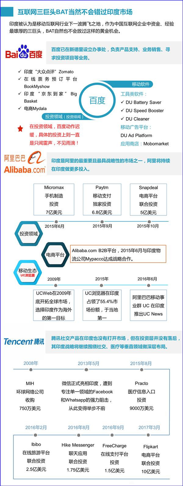 對(duì)于大量經(jīng)過(guò)中國(guó)市場(chǎng)殘酷競(jìng)爭(zhēng)歷練的中國(guó)移動(dòng)互聯(lián)網(wǎng)企業(yè)而言,目前是寶貴的進(jìn)入時(shí)間窗口。一份數(shù)據(jù)顯示,在2015年1月到2016年6月期間,以BAT為代表的數(shù)家中國(guó)企業(yè)已經(jīng)對(duì)印度企業(yè)投資了至少11億美元。