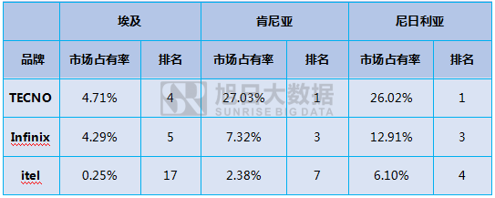2016年,傳音旗下三大品牌的智能機(jī)在埃及、肯尼亞及尼日利亞市場都取得了不錯的成績,其中TECNO智能機(jī)在肯尼亞和尼日利亞市場占有率均排名第一,在埃及市場占有率第排名第四。