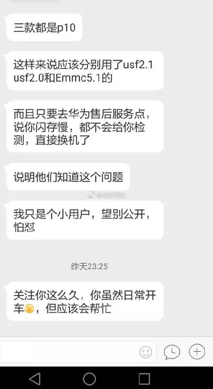 涂層、拖影都是小問題,并不會(huì)對用戶體驗(yàn)造成太大傷害,只能說華為在小細(xì)節(jié)上玩起了小聰明。然而,近日,在華為P10貼吧曝光一組閃存測試數(shù)據(jù)出現(xiàn)巨大差異后,微博、微信等其它社交平臺(tái)開始發(fā)酵,華為P10的閃存疑似采用MIC顆粒和TLC顆?;煊茫斐刹煌謾C(jī)閃存速度差異,速度最差的竟然只能達(dá)eMMC5.1的標(biāo)準(zhǔn),和官方宣傳的UFS2.1的傳輸速度大相徑庭。有人士指責(zé)華為涉嫌利用消費(fèi)者的外行人身份進(jìn)行虛假宣傳,引起網(wǎng)絡(luò)跟風(fēng)。