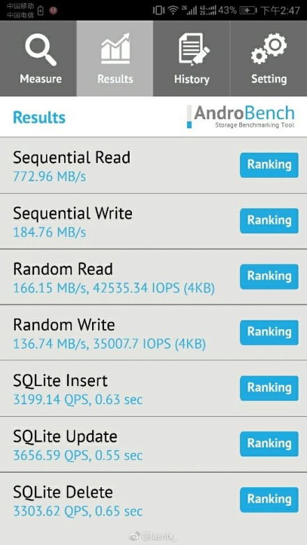 閃存顆粒缺貨漲價(jià),華為為了手機(jī)利潤,利用消費(fèi)者行外人身份!P10用戶網(wǎng)友曝光,貼吧的華為P10用戶對閃存讀寫速度的測試,實(shí)際測試三臺(tái)P10數(shù)據(jù)簡直驚人!