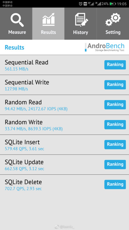 據(jù)網(wǎng)友軟件測試截圖顯示,抵擋跑分為300MB/s左右,中檔為600MB/s左右,高檔為800MB/s!網(wǎng)友質(zhì)疑是華為把EMMC5.1、UFS2.0和UFS2.1混著用!同時(shí),網(wǎng)友質(zhì)疑,P10內(nèi)存縮水,運(yùn)存為DDR3而不是官宣的DDR4!網(wǎng)友紛紛跑到余承東微博下方留言怒懟華為P10!