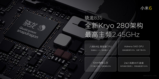續(xù)航方面,小米6搭載3350mAh電池,加之MIUI系統(tǒng)省電優(yōu)化,讓手機做到一整天不用充電。高通驍龍835的10nm工藝也帶來了更好的性能,更低功耗,對比高通驍龍上代產品,功耗降低了25%。