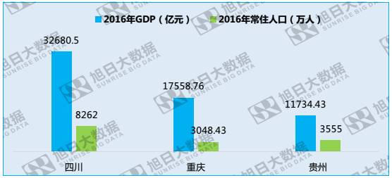 圖表 6  2016年重慶、四川和貴州GDP總值及常住人口數(shù)