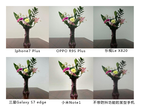 我們采用同樣的室內(nèi)環(huán)境分別對Iphone 7 plus, OPPO R9s Plus, 小米Note1,樂視超級手機Le X820, 三星Galaxy 7 edge, 以及某型不帶光學防抖的一千三百萬像素六款旗艦機型進行對比,看一下究竟光學防抖的加入給手機的拍照帶來怎樣的改觀。(注意:上述僅一款旗艦機型不帶光學防抖功能)