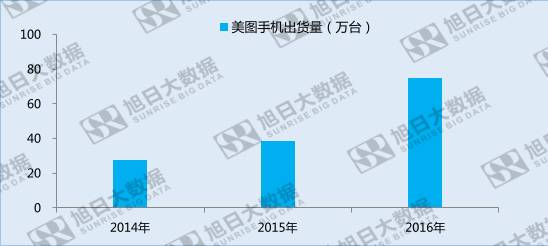 從美圖公司的業(yè)務結(jié)構(gòu)看,其手機業(yè)務收入達到14.7億元,同比增長120.9%,占2016年總收入的93%。主要得益于美圖手機的出貨量逐年上升,2016年美圖手機出貨量達到75萬臺,同比增長接近93%。
