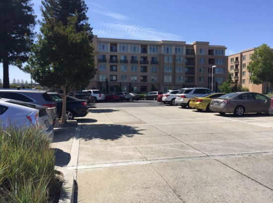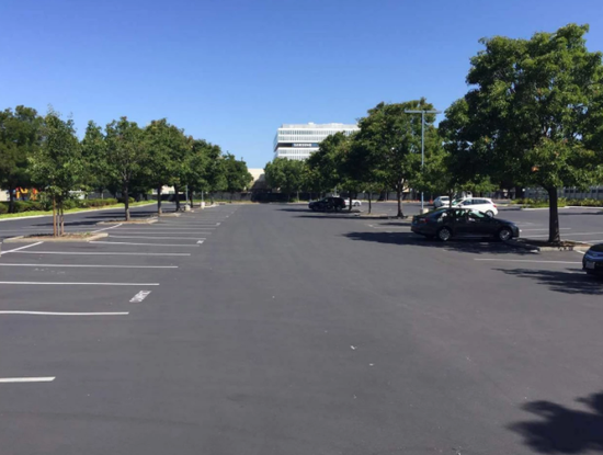 同一時間點,對面一家公司的停車場已經(jīng)停滿了車輛。