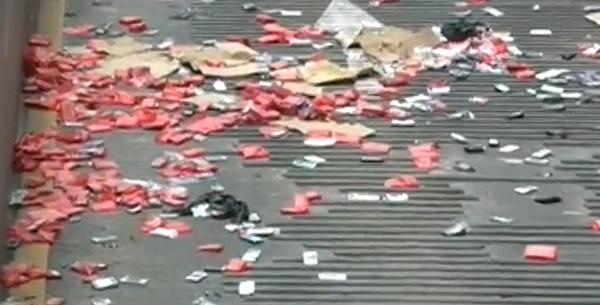 山寨手機(jī)商從樓上砸下手機(jī),銷毀證物。 深圳電視臺(tái)都市頻道截圖
