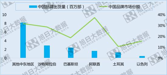 圖表3 2016年中國品牌在中東地區(qū)出貨量及市場份額