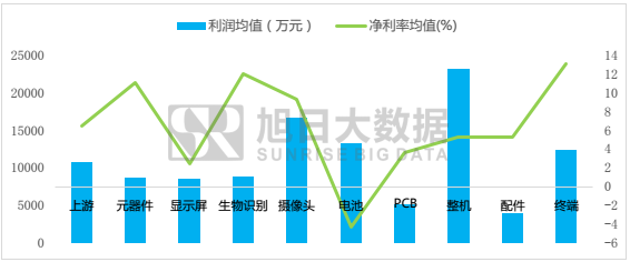 根據(jù)旭日大數(shù)據(jù)中心數(shù)據(jù)顯示,2017年手機攝像頭部分上市企業(yè)的利潤均值為16676.34萬元,占手機整個產(chǎn)業(yè)鏈上市企業(yè)利潤的15%,是除整機外利潤最高的部分。利潤率緊排在終端、電子元器件、生物識別等高端科技之后,但該幾部分絕對利潤均在攝像頭之后,說明其在量上還有一些限制。絕對利潤上攝像頭部分僅排在整機之后,但是整機沒有攝像頭較高的利潤率。因此攝像頭在相對于其他高技術含量的部分有量上的優(yōu)勢(產(chǎn)能效應明顯),相對于整機絕對利潤大的部分攝像頭部分有利潤率上的優(yōu)勢,這正是我們看好攝像頭部分的原因。
