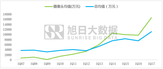 我們在上一期手機產(chǎn)業(yè)鏈利潤分析報告(手機產(chǎn)業(yè)上市企業(yè)利潤詮釋之系列一:機遇與危機并存)中提到,在手機產(chǎn)業(yè)鏈中攝像頭是不錯的投資板塊,根據(jù)旭日大數(shù)據(jù)中心數(shù)據(jù)顯示,目前國內攝像頭上市公司一共12家,該部分上市公司利潤均值從07年的723.45萬元增長到2017年的16676.34萬元,年均增長230%;是整個手機產(chǎn)業(yè)鏈之中為數(shù)不多的利潤水平高于整體利潤均值水平的部分;并且在2012年之后攝像頭的利潤增長與整體的上市公司利潤水平呈逐漸拉升的趨勢,這也預示著未來攝像頭利潤將持續(xù)高于手機產(chǎn)業(yè)鏈上市公司整體水平,并以大于手機產(chǎn)業(yè)上市公司整體利潤水平的增長速度快速增長。