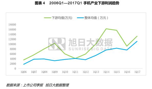 此外,根據(jù)旭日大數(shù)據(jù)中心數(shù)據(jù)顯示,在手機產(chǎn)業(yè)鏈上、中、下游中,僅有下游整體利潤水平在產(chǎn)業(yè)鏈總利潤水平之上;在一定程度上說明手機產(chǎn)業(yè)鏈下游端需求旺盛,將持續(xù)拉升中、上游的需求,從而帶動整個手機產(chǎn)業(yè)鏈利潤水平的持續(xù)增長,帶動整個手機產(chǎn)業(yè)鏈的持續(xù)繁榮。