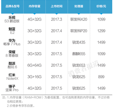 主力機內(nèi)存配置基本從4G+64G起,與千元機涇渭分明,某些品牌也會采旗艦級處理器,如驍龍835和麒麟960。