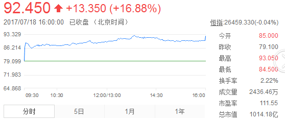 筆者查閱近半年來,舜宇光學(xué)的股票,發(fā)現(xiàn)其增長勢頭迅猛,從2017年1月27日33.60元/股的最低點(diǎn),增長至7月18日92.45元/股的最高點(diǎn),半年來漲幅增長近兩倍有余。