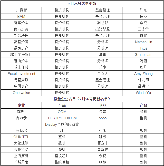 參觀及考察目前市場(chǎng)上已有全面屏相關(guān)產(chǎn)品的企業(yè)走訪,具體詳情如下: