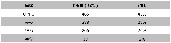 從中端暢銷機型排行榜看,同樣是TOP15的機型,上榜的機型就僅剩下OPPO、vivo、華為、金立4個品牌,并且品牌占比份額更為集中。排名第一的OPPO上榜機型達到5款,占比達到45%;vivo上榜機型則為4款,占比為28%;華為有5款機型上榜,占比為26%。中端市場排行榜的前三品牌占比高達98%,光是OPPO已經(jīng)占據(jù)中端暢銷機型近一半的量,與第二名的vivo差距明顯拉大不少,中端智能機市場可謂高度集中。